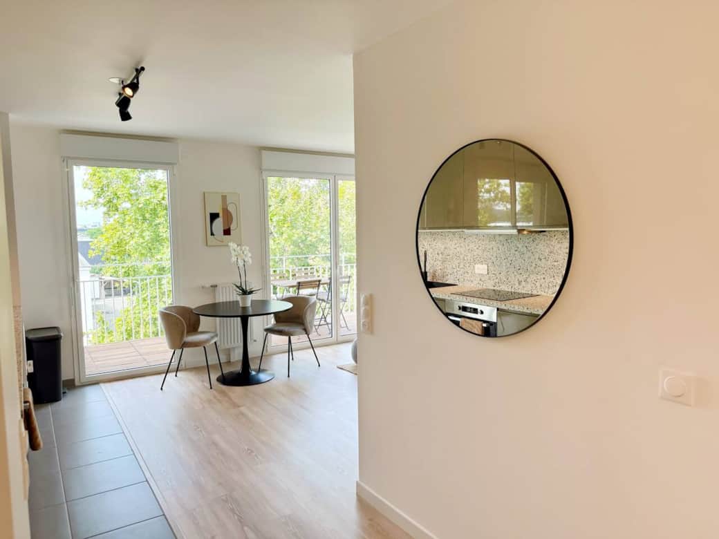 Brand-new apartment with balcony, just 15 min from Paris and La Défense. Perfect base to explore the Champs-Élysées, Montmartre and the Louvre, while staying in a lively district. Steps from Qwartz mall (160 shops & restaurants), Mégarama cinema and the vast Chanteraines Park. Quick access to Stade de France and public transport. Fully equipped kitchen, fibre Wi-Fi, cosy bedroom and bright lounge for a stylish and comfortable stay.